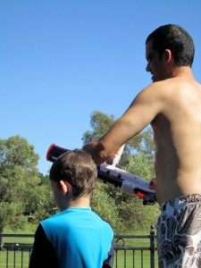 Laura and Jordan picked up a couple of super soakers for the boys. So much fun!!